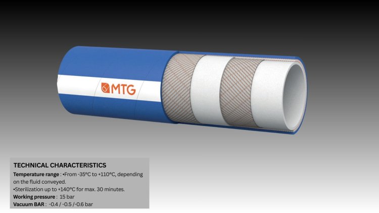 MTG hoses are fully compliant with international standards such as USP Class VI, ISO 10993, FDA, EU 10/2011, 3-A Sanitary Standards, and more, ensuring maximum safety for food and pharmaceutical applications.